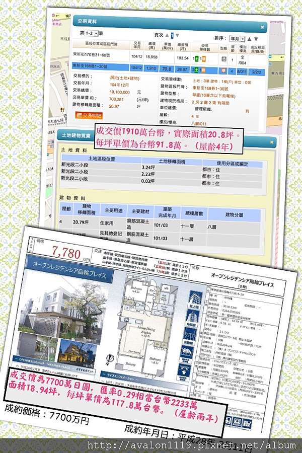 再次聲明,日本的實價登錄做半套,不是每個成交案件都會被登錄至REINS,台北目前成交量萎縮,要找到你想查詢的地段跟產品,不見得有成交!因此這樣的比較只是草率的,不代表什麼。